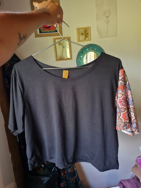 REMERA OVER corta combinada